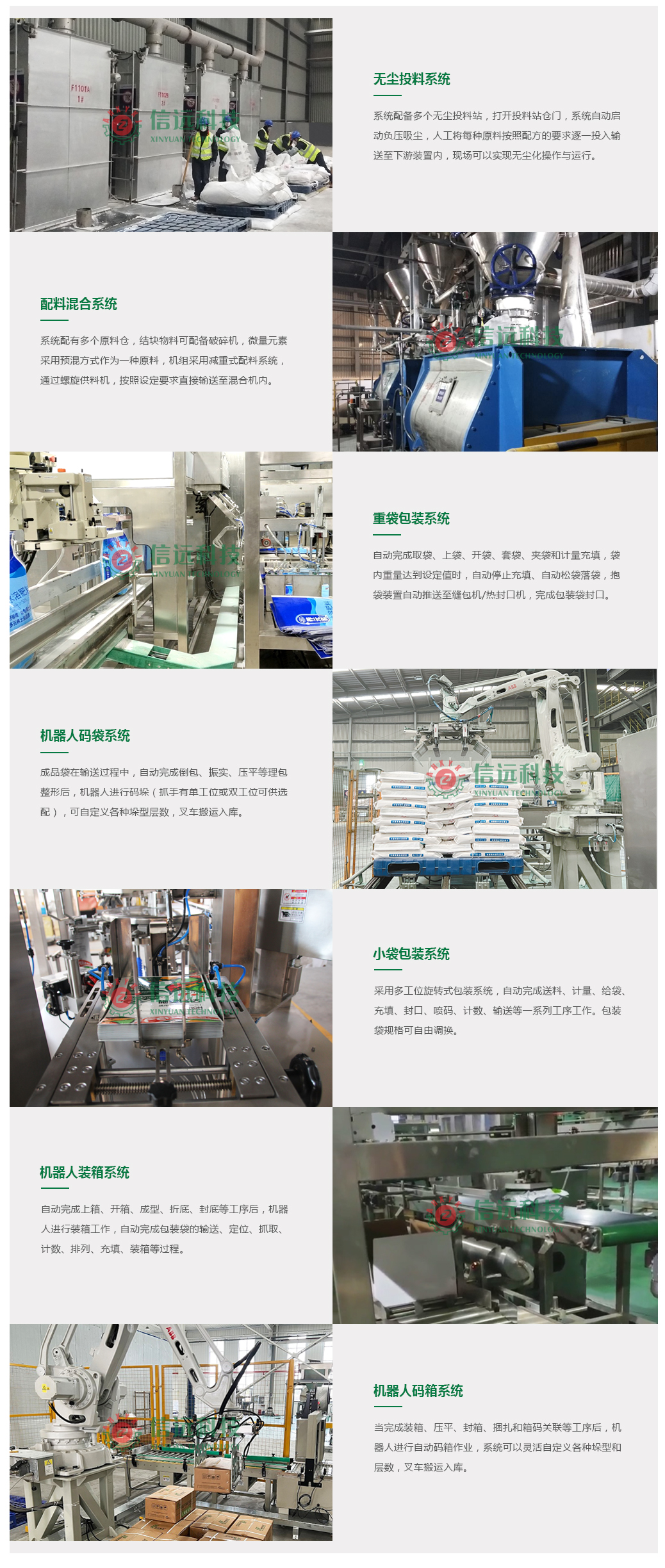 集投料、配料、混合、計量、包裝、碼垛、除塵于一體