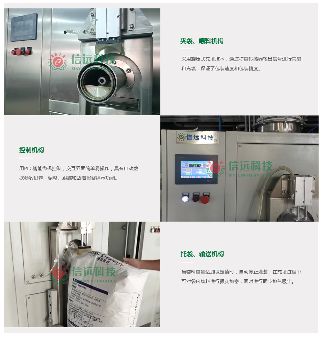 振動排氣機(jī)構(gòu)及氣流輔助輸送單元可對袋內(nèi)物料進(jìn)行振實(shí)加密