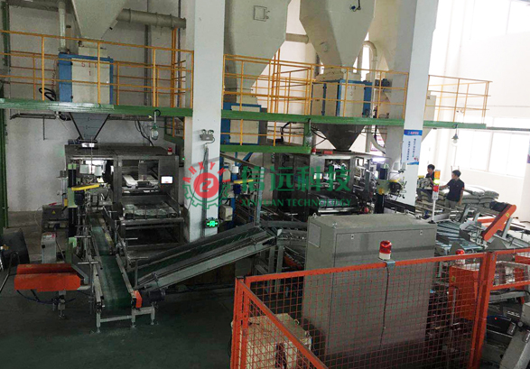 自動給袋、上袋、縫包、輸送、機器人碼垛于一體