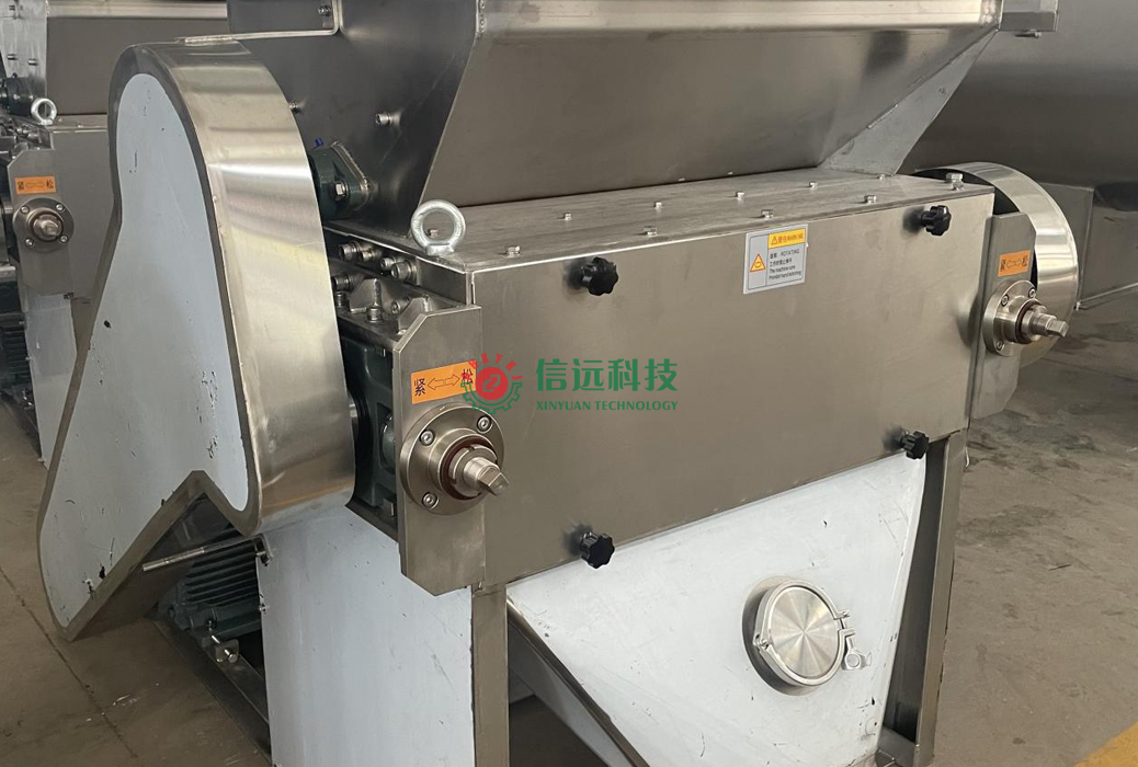 信遠(yuǎn)科技SG型對(duì)輥式尿素粉碎機(jī),根據(jù)擠壓粉碎原理設(shè)計(jì)而成,兩個(gè)圓形輥筒通過高速相向旋轉(zhuǎn),物料自上而下通過輥筒碾壓擠壓而粉碎成粉狀。該機(jī)屬于立式粉碎機(jī),方便操作,粒度目數(shù)可以在一定范圍內(nèi)自由調(diào)節(jié),進(jìn)料口裝有格柵,可防止倒料時(shí)操作安全和大塊料或者編織袋進(jìn)入;格柵下部有破塊齒輥,可破碎稍大塊物料,即使有少量結(jié)塊也不會(huì)堵塞,保證了穩(wěn)定連續(xù)的粉碎工作。