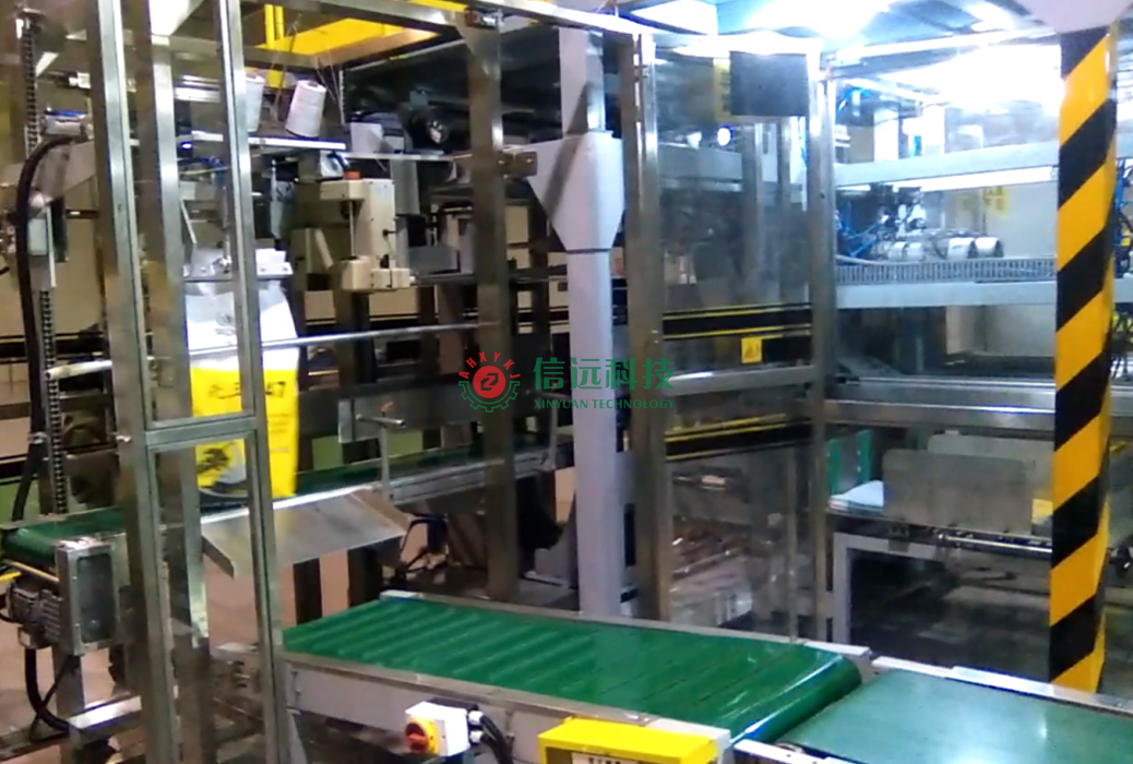 信遠(yuǎn)科技全自動(dòng)重袋二次包裝生產(chǎn)線,由小袋包裝機(jī)、雙層傾斜輸送機(jī)、高速輸送機(jī)、計(jì)數(shù)理包機(jī)、編織袋全自動(dòng)包裝機(jī)、縫包機(jī)、產(chǎn)品輸送機(jī),碼垛機(jī)器人等設(shè)備組成。可以實(shí)現(xiàn)從散裝物料小包裝到編織袋重袋包裝的全自動(dòng)化作業(yè),節(jié)約了人力、物力及財(cái)力的投入,為客戶減少生產(chǎn)成本,也提高了生產(chǎn)效率,該機(jī)組廣泛用于種子、食鹽、肥料、洗衣粉等顆?;蚍蹱町a(chǎn)品的袋中袋包裝。