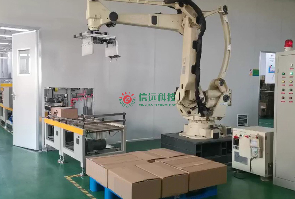 安徽信遠(yuǎn)包裝科技有限公司全自動(dòng)裝箱碼垛生產(chǎn)線,已在眾多現(xiàn)代工業(yè)化生產(chǎn)企業(yè)中被廣泛使用,它將包裝袋按照編輯程序進(jìn)行機(jī)器人裝箱,再按照設(shè)定的工作方式進(jìn)行自動(dòng)堆疊成垛,可堆碼多層,便于用戶的儲(chǔ)存、運(yùn)輸和銷售。該生產(chǎn)線應(yīng)用范圍廣、占地面積少,性能可靠,操作簡(jiǎn)便,可以廣泛應(yīng)用于食品、藥品、醫(yī)療、乳品、化工、日化、肥料、飼料等行業(yè)領(lǐng)域袋裝物料的批量生產(chǎn)。