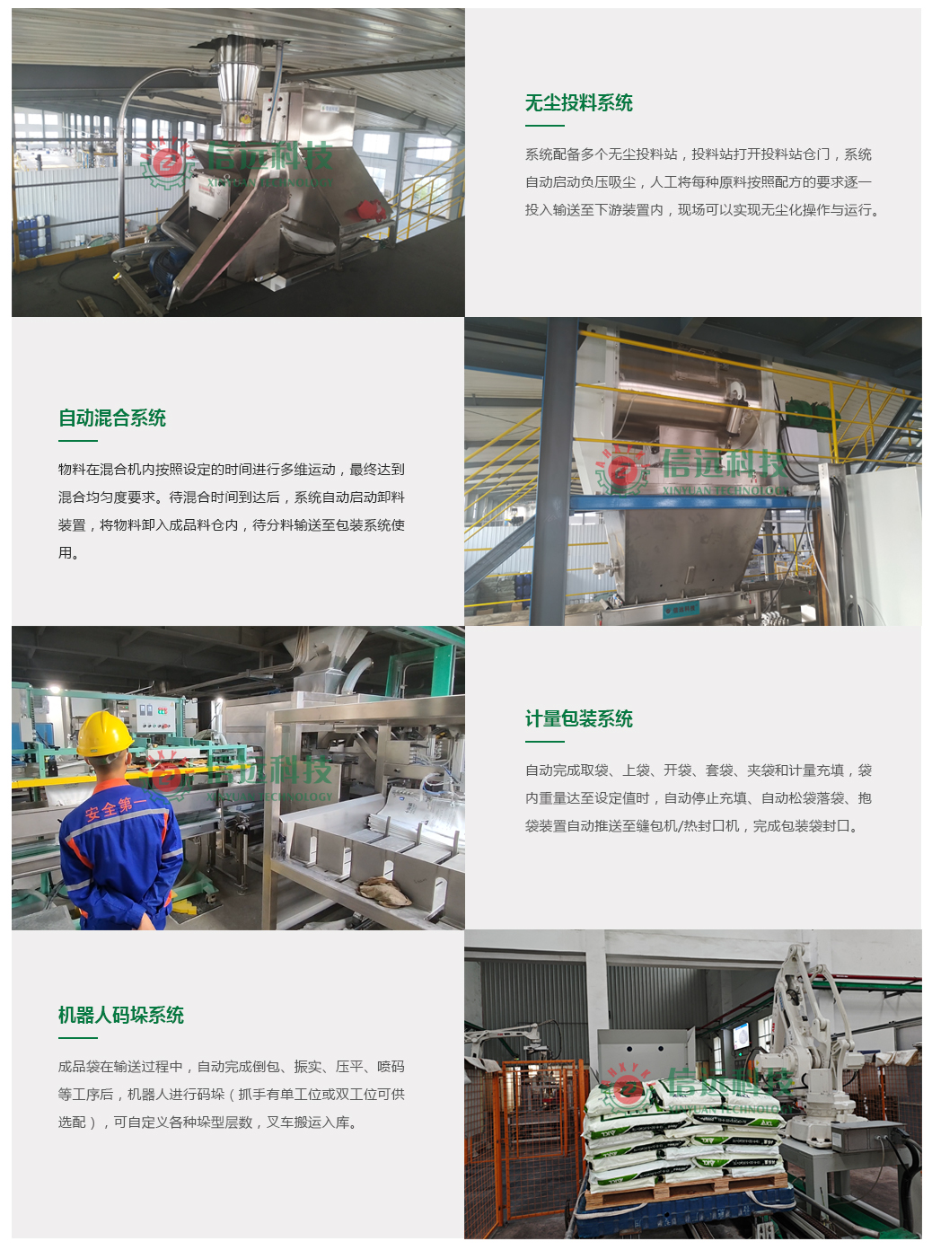 集混合、包裝、機器人碼垛于一體的自動化生產線設備