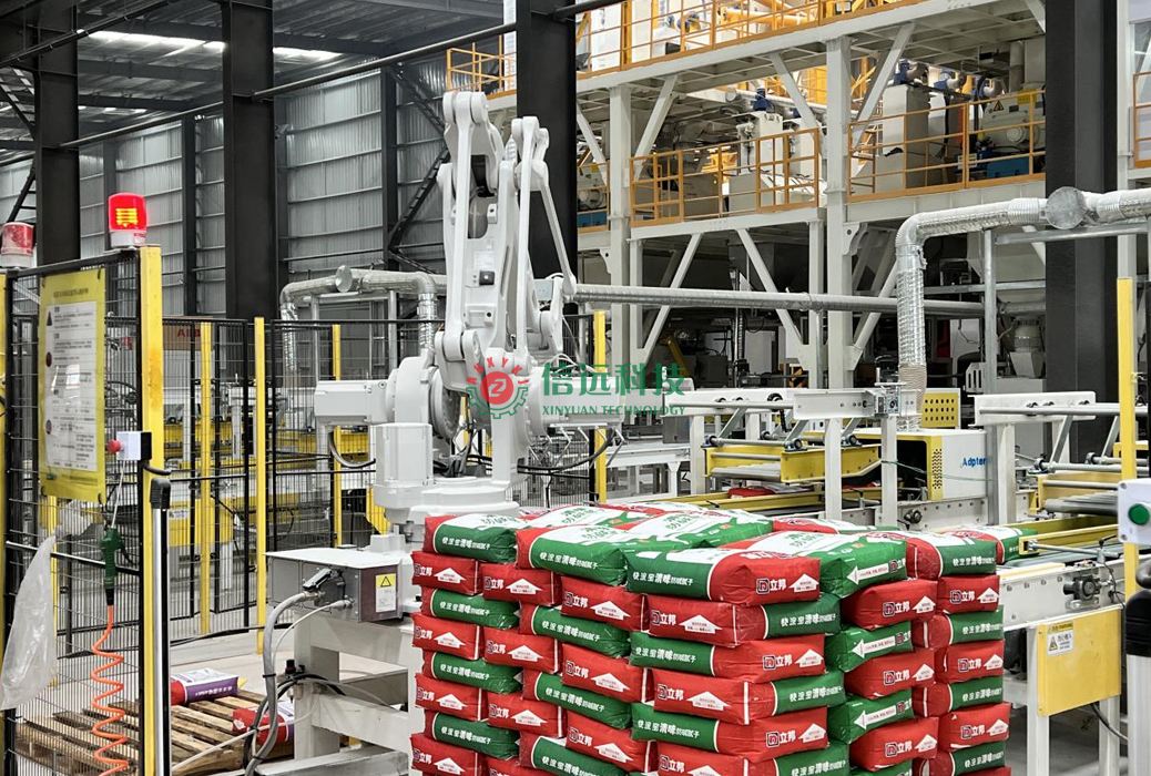 信遠科技全自動膩子粉生產(chǎn)線,采用高效螺帶干粉混合機,該機是在多代機型的技術(shù)基礎(chǔ)上融合多種優(yōu)勢研發(fā)而制,具有自動喂料,氣動放料,筒壁無積塊、無死角的優(yōu)良性能。年產(chǎn)兩到三萬噸左右的小噸位膩子粉生產(chǎn)設(shè)備,一般情況下會用到4-6個原料罐,合理滿足各種配料的供給需求。計量系統(tǒng)在計量螺旋的配合下,把料倉中的原料導(dǎo)入計量倉,通過傳感器的數(shù)據(jù)反饋,實現(xiàn)計量包裝。輸送線配備整形、清灰、噴碼多道工序,保證每一袋產(chǎn)品外觀干凈整潔、形狀整齊化一,然后碼垛、纏繞覆膜。大大提高出廠產(chǎn)品的外觀檔次,實實在在的增加了產(chǎn)品的市場競爭力。