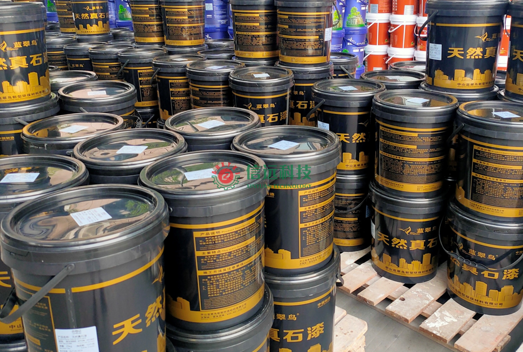 安徽信遠包裝科技有限公司全自動涂料生產(chǎn)線,采用立體空間布置,由上往下式流程,全自動化操作,自動進料、自動稱重計量、高速分散、循環(huán)研磨、真空消泡、自動過濾、自動灌裝碼垛等整套工藝流水工序完成,提高了生產(chǎn)效率,減少了勞動強度。該生產(chǎn)線采用全封閉操作,實現(xiàn)了人機分離進行分散,研磨,調(diào)漆,不會造成環(huán)境污染,同時避免了化學(xué)物質(zhì)對人體的侵害。該套設(shè)備可以生產(chǎn)內(nèi)外墻乳膠漆、真石漆、質(zhì)感漆、多彩漆、防水材料等多種涂料產(chǎn)品。