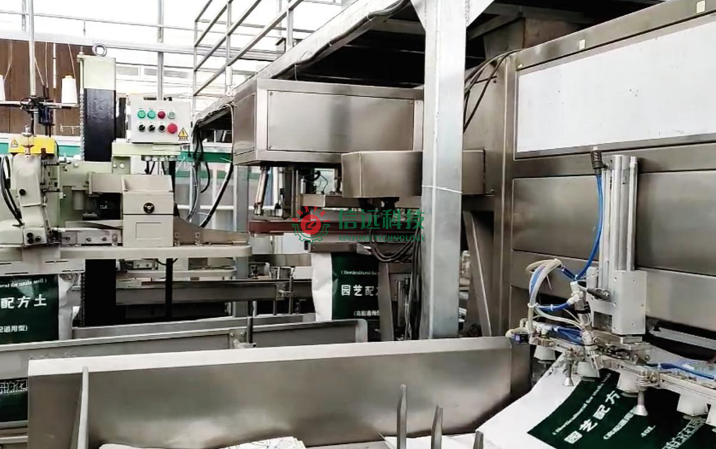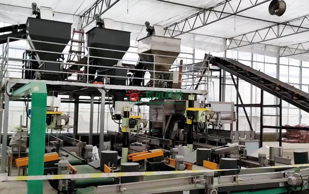 安徽信遠(yuǎn)包裝科技有限公司作為國(guó)內(nèi)知名的農(nóng)資農(nóng)化設(shè)備專業(yè)制造商,按約為客戶提供了全套基質(zhì)土營(yíng)養(yǎng)土自動(dòng)化生產(chǎn)線設(shè)備。生產(chǎn)流程:首先,把配方原料進(jìn)行預(yù)處理生產(chǎn),然后按照工藝配比進(jìn)行動(dòng)態(tài)配料,經(jīng)過(guò)破碎混合輸送至篩分系統(tǒng),之后通過(guò)輸送機(jī)連續(xù)供料給重袋包裝機(jī)工段,全自動(dòng)包裝機(jī)可以自動(dòng)完成取袋、上袋、套袋、夾袋、計(jì)量、充填和縫包作業(yè)。包裝好的成品袋在輸送過(guò)程中,自動(dòng)完成倒包、振實(shí)、壓平等理包整形作業(yè),然后匯流輸送裝車。