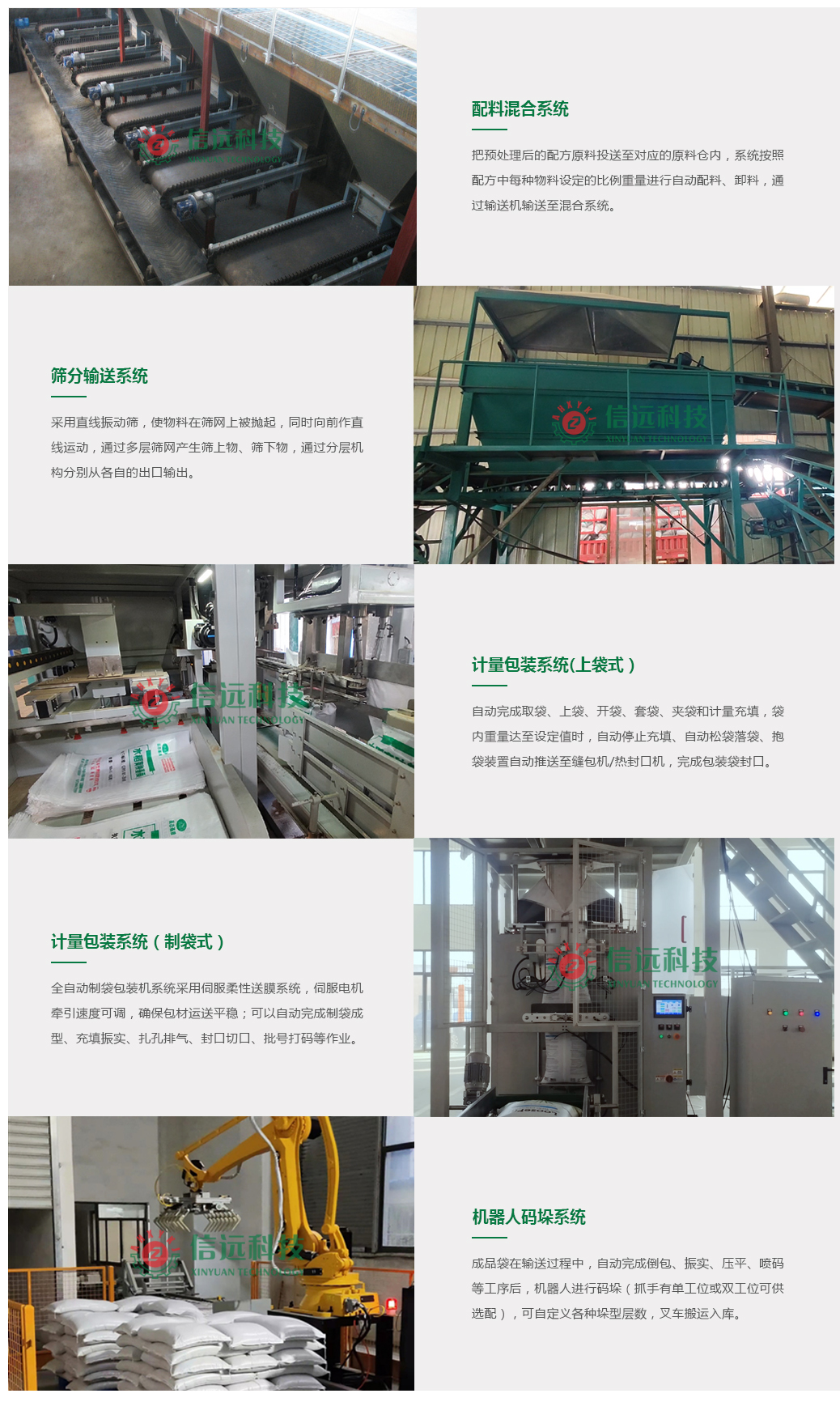 主要由配料、混合、包裝、碼垛四大工段設(shè)備組成