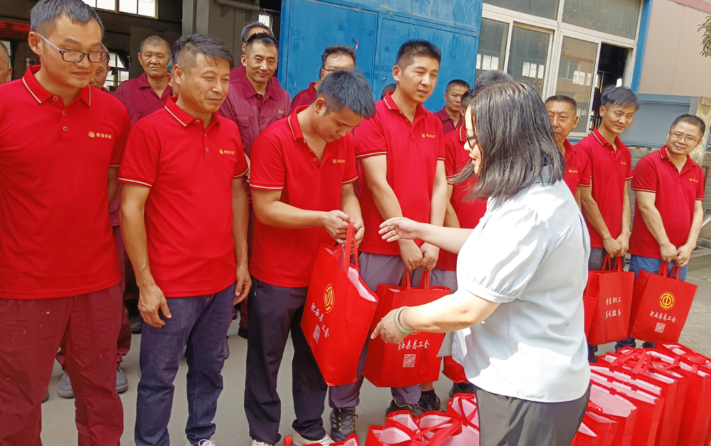 “大家在如此高溫下堅(jiān)守崗位,可敬可佩。你們的汗水是對客戶最好的承諾。我們還要經(jīng)歷一段炎熱的伏天,每個(gè)人既要保障安全生產(chǎn)萬無一失,更要時(shí)刻注意自身身體變化,保重身體!”肥西縣總工會黨組成員、經(jīng)審委主任李藝親手將慰問物資遞到一線職工手中,詢問了生產(chǎn)人員的值班安排,了解加工設(shè)備運(yùn)行狀況,反復(fù)叮囑大家務(wù)必做好防暑降溫措施,確保身體健康與安全生產(chǎn)“雙在線”。