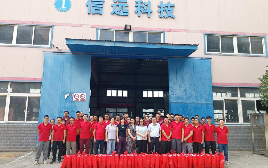 炎炎夏日送清涼,絲絲關(guān)懷暖人心。7月25日下午,肥西縣總工會黨組成員、經(jīng)審委主任李藝,在紫蓬鎮(zhèn)黨委副書記晏永花、鎮(zhèn)工會專職副主席黃莉等相關(guān)領(lǐng)導(dǎo)陪同下驅(qū)車來到安徽信遠(yuǎn)包裝科技有限公司。在信遠(yuǎn)公司董事長倪合青的陪同下,走進(jìn)各個(gè)生產(chǎn)車間對奮戰(zhàn)在高溫一線的信遠(yuǎn)職工進(jìn)行慰問,并送上防暑降溫慰問品,把組織的關(guān)心關(guān)愛送到基層一線,讓廣大職工充分感受到工會“娘家人”的溫馨關(guān)懷。